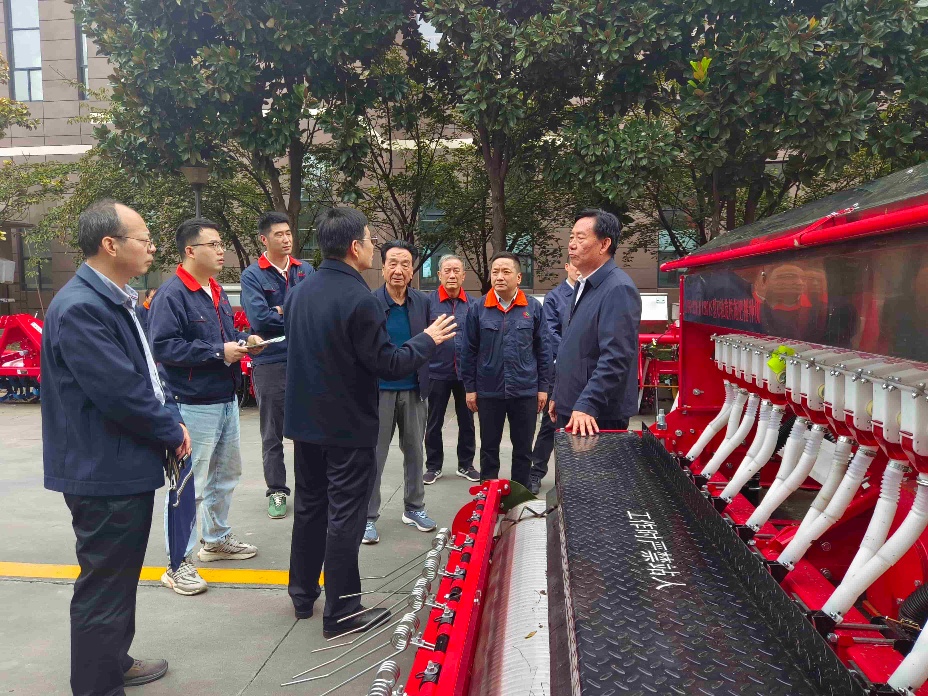 2025年入汛以來,陜西省農(nóng)業(yè)生產(chǎn)遭遇“前旱后澇”極端天氣挑戰(zhàn),春播期干旱導(dǎo)致土壤墑情不足,汛期連續(xù)降雨又引發(fā)局部內(nèi)澇,對糧食生產(chǎn)構(gòu)成嚴(yán)峻威脅。在此關(guān)鍵時刻,陜西省農(nóng)業(yè)機(jī)械化發(fā)展中心主任穆正祥、處長王成及相關(guān)科室負(fù)責(zé)人一行于近日蒞臨亞澳農(nóng)機(jī)開展專題調(diào)研指導(dǎo),為企業(yè)抗災(zāi)農(nóng)機(jī)具研發(fā)生產(chǎn)“把脈定向”,為全省“抗淋保糧”行動提供裝備支撐注入權(quán)威力量。