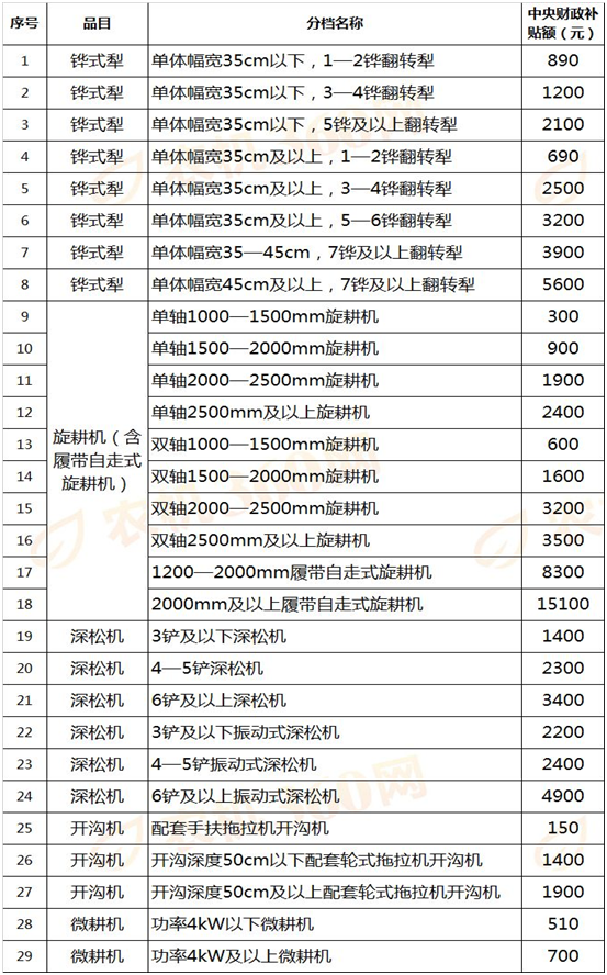 附件:河南省2019年農機購置補貼機具補貼額一覽表(公示稿)